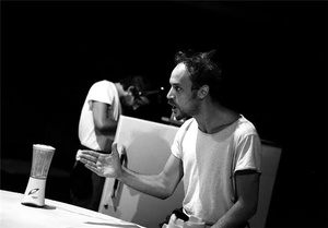 هنوز در بُهت دیدن این صحنه بودم که متوجه توضیحات شمس برای دوستانش شدم: نمایشنامه این اثر را بر اساس خشونتهای صورت گرفته در حق بسیاری از انسانها از دوره مغول تا زمان ظهور داعش نوشتهام البته انگیزه اصلیم نشان دادن توحش همین داعشیهاست، هرچند که در نمایش به طور مستقیم اسمی از داعش نمیبریم. میخواستم با این نمایش رابطه ظالم و مظلوم و رفتارهای متناقص بشر در عصر مدرنیته را نشان دهم.صحبت که به اینجا رسید، پریسا نظری تنها بازیگر فارسی زبان نمایش وارد سالن میشود و به جمع دو بازیگر ایتالیایی ملحق میشود که همراه آنها برای اجرا آماده شود. نظری به محض ملحق شدن به گروه، با پیرو کاردانو بازیگر ایتالیایی تمرین خود را آغاز میکند. وی که در واقع مترجم اصلی متن این نمایشنامه است در نمایش هم در نقش یک مترجم ظاهر میشود که وظیفه ترجمه افکار و تک جملههای یکی از شخصیتهای داستان را برعهده دارد که فردی لال است.تیم اجرایی نمایش نیز مشغول کار است، یکی نردبان میآورد که بلندگوهای سالن را تنظیم کند و دیگری در حال تنظیم میاننویسهای نمایش است و دستیار کارگردان هم مشغول تنظیم کردن برخی از اشیای لازم بر روی صحنه است.کارگردان همچنان در حال صحبت با دوستانش است که فرصت را غنیمت میشمارم و سراغ پریسا نظری مترجم و بازیگر نمایش میروم.