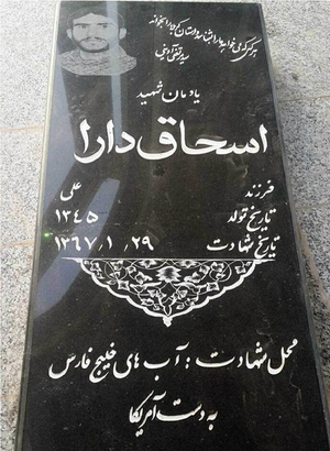شهیدی که خودش دل دخترش را آرام کرد هنگامی که آقا اسحاق به شهادت رسید بعد از ۱۰ روز خبر شهادتش را به همسرش دادند. در این میان همه نگران دختر دو ساله و نیمهاش بودند. اما با همان لحن کودکانهاش برای مادرش خوابی را تعریف کرد که پدرش آسمانی شده است. آقا اسحاق همیشه میگفت: من شهید میشوم. طوری شهید میشوم که همه شما تعجب میکنید و در حیرت بمانید حتی جسدم هم به دست شما نمیرسد. همین هم شد آقا اسحاق جاویدالاثر شد. درباره شهید شهید اسحاق دارا متولد ۱۳۴۵ روستای گیشان از توابع بندرعباس است. در ۲۹ فروردین سال ۱۳۶۷ در اطراف جزیره ابوموسی توسط نیروهای آمریکایی بر اثر اصابت موشک به قایقش به شهادت رسید و پیکرش برای همیشه در دریای خلیج فارس باقی ماند. درباره عملیات در اولین ساعات بامداد بیست و هشتم فروردین سال ۱۳۶۷ ناوچه جوشن مأموریت یافت تا کاروانی از نفتکشهای ایرانی را از مبدأ جزیره خارک تا نقطهای از پیش تعیین شده در خلیج فارس، اسکورت کند. در راه بازگشت به سوی اسکله ناوگان، خبر حمله به سکوهای نفتی نصر و سلمان به ناوچه جوشن رسید. متعاقب این خبر ناوچه جوشن به سمت سکوهای نفتی مورد هجوم تغییر مسیر داد و در جریان رویارویی با نیروهای آمریکایی سرانجام بر اثر اصابت موشکهای متعدد به نقاط مختلف ناوچه و انفجارهای پیدر پی در مراکز حساس واحد شناور، جوشن در ژرفای آبهای خلیج فارس آرام گرفت. انتهای پیام/.