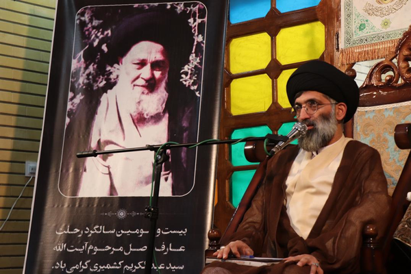 به گزارش خبرنگار حوزه مسجد و هیأت خبرگزاری فارس، یادبود بیست و سومین سال رحلت عارف فرزانه آیت‌الله کشمیری به همت هیأت دارالبکاء دختران موسی بن جعفر (ع) با سخنرانی حجت‌الاسلام سیدعباس موسوی مطلق استاد اخلاق و سعید عمرانی از نزدیکان مرحوم جعفر آقامجتهدی و آیت‌الله کشمیری جمعه ۱۹ فروردین‌ماه در قم برگزار شد. آیت‌الله کشمیری، فانی فی الله بود حجت‌الاسلام موسوی مطلق در این مراسم با بیان اینکه عالم ربانی و عارف کامل مرحوم آیت‌الله کشمیری یک موحد به تمام معنی بود، اظهار داشت: او فانی فی الله بود و فنا را به معنای هیچ حول و قوه‌ای در خود ندیدن می‌دانست. مرحوم حاج محمداسماعیل دولابی می‌گفت وقتی می‌گوئیم لاحول ولاقوة الا بالله یعنی هیچ چیز برای هیچ‌کس نماند. وی ادامه داد: مرحوم کشمیری فنا را کار برای خدا می‌دانست؛ «قُلْ إِنَّ صَلاتِی وَ نُسُکِی وَ مَحْیایَ وَ مَماتِی لِلَّهِ رَبِّ الْعالَمِینَ» کسی می‌تواند این‌چنین باشد که ما سوی الله را نبیند. موحد بودن این مرد الهی در متوکل بودن او ظهور و بروز می‌کرد. موسوی مطلق تصریح کرد: مرحوم آیت‌الله کشمیری اهل سکوت بود، سکوت به تعبیر امام صادق علیه‌السلام شعارالمحققین به حقائق ما سبق است. تا سالک اهل سکوت نباشد، حقایق عالم را نمی‌شنود، تا دهان بسته نشود آنچه ناشنیدنی است، شنیده نمی‌شود، تا چشم بسته نشود آنچه نادیدنی است، دیده نمی‌شود. سکوت از مهمترین خصوصیات اولیاء خداست.