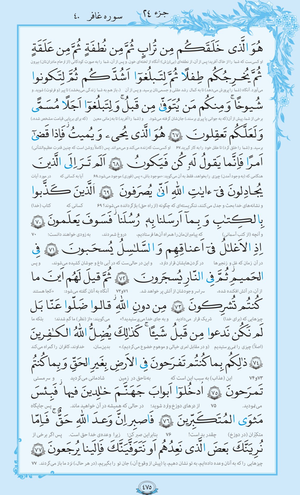 خبرگزاری فارس- گروه قرآن و فعالیتهای دینی: امام علی (ع) میفرمایند: «اَلبَیتُ الَّذی یُقرَآُ فیهِ القُرآنُ وَ یُذکَرُ اللهُ عَزَّ وَ جَلَّ فیهِ تَکثُرُ بَرَکَتُهُ وَ تَحضُرُهُ المَلائِکةُ وَ تَهجُرُهُ الشَّیاطینُ» خانهای که در آن قرآن خوانده شود و خدا را به یاد آرند، برکتش فزونی یابد و فرشتگان به آن خانه درآیند و شیاطین از آن دوری جویند. (اصول کافی ۲/۶۱۰) در ادامه تلاوت ترتیل صفحه ۴۷۵ قرآن کریم شامل آیات ۶۷ تا ۷۷ سوره مبارکه غافر با صدای شهریار پرهیزکار تقدیم میشود. انتهای پیام/