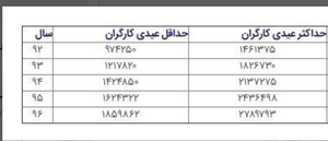 کارگران از سال 92 تا 96 چقدر عیدی گرفتند + نمودار