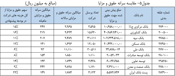 متوسط دریافتی کارکنان بانکهای دولتی چقدر است +جدول