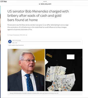 «باب منندز» سناتور حزب دموکرات آمریکا از ایالت نیوجرسی و همسرش روز جمعه ۲۲ سپتامبر از سوی دادستانهای فدرال به اخذ رشوه متهم شدند.