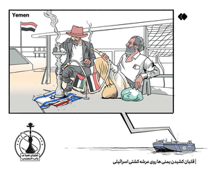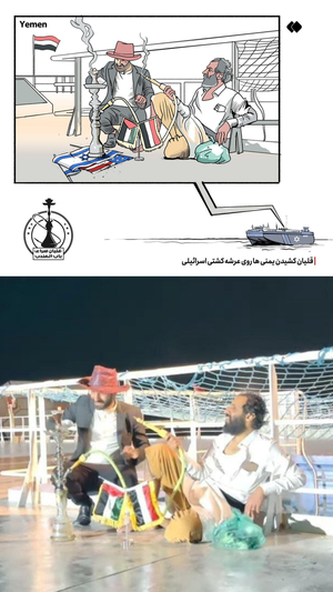 قلیان کشیدن یمنی ها روی عرشه کشتی اسرائیلی در باب المندب (نوامبر ۲۰۲۳)