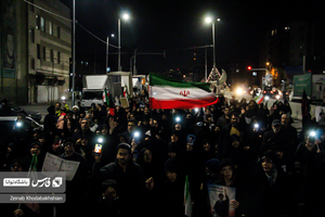 در ششمین شب پیاپی، مردم تهران از مسیر های ۲۱متری جی، هاشمی، یادگار امام، دستغیب به سمت میدان استاد معین تهران در فراق حضرت آیتالله شهید سید علی خامنهای رهبر معظم انقلاب اسلامی به عزاداری پرداختند.عکس: زینب خدابخشیان