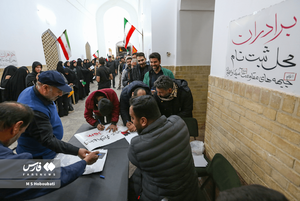 مردم یزد در اقدامی داوطلبانه و پویشی اجتماعی به مسجد امیرچقماق آمده و با ثبتنام و پرکردن فرم مشخصات و رضایتنامه آمادگی خود را برای مبارزه و حضور عملیاتی و اعزام میدانی در برابر اسرائیل اعلام کردند. عکس: محمدصادق حبوباتی