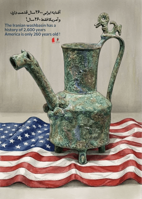 ۲۶۰۰ سال قبل مردم ایران برای طهارت از آفتابه استفاده میکردند در حالی که آمریکا کلا ۲۵۰ سال قدمت دارد، این یعنی کشوری که یک دهم آفتابه ایرانی هم تاریخ ندارد ایران را تهدید میکند که به عصر حجر برمیگرداند.نمایش گزارش