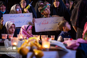 دانشآموزان سمنانی سهشنبه شب با لباسهای مدرسه و کولهپشتیهای خود به مناسبت چهلم شهادت فرشتههای میناب در اجتماع شبهای اقتدار حضوری متفاوت را رقم زدند و با رفیقهای شهید خود پیمان بستند که انتقام خون مظلومانه آنها را بگیرند.عکس: محمدجواد فرخاری