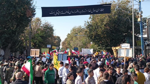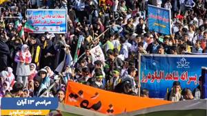 مراسم سیزده آبان در مشهدالرضا صحنه شور نوجوانانی است که علیه نظام سلطه فریاد میزنند.
