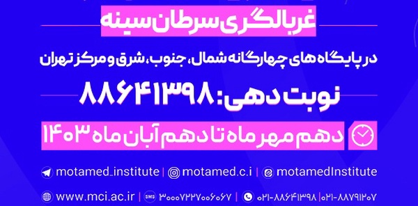 از ۲۸ مهر تا ۷ آبان ساعت 9 الی 13، برنامه غربالگری رایگان سرطان سینه با حضور پزشکان متخصص و کارشناسان سلامت پژوهشکده سرطان معتمد جهاددانشگاهی در محلات مختلف شهرداری شهر تهران برگزار می‌شود. 🌍 این غربالگری با هدف ارتقاء سلامت عمومی و پیشگیری از سرطان سینه در مناطق زیر اجرا می‌گردد: 1️⃣ منطقه 16: 28 مهر 📍 علی آباد جنوبی - بلوار دستواره - انتهای 24 متری باستانی پور - بن بست فرهنگ - سرای محله علی آباد جنوبی 2️⃣ منطقه 10: 29 مهر 📍 خیابان آزادی - بعد از یادگار امام - جنب کارخانه زمزم - ساختمان ستادی منطقه 10 3️⃣ منطقه 13: 30 مهر 📍 انتهای پیروزی - ابتدای سی متری نیرو هوایی - خیابان 26/10 - ضلع شمال شرقی پارک پیروزی 4️⃣ منطقه 22: 1 آبان 📍 اتوبان همت غرب - شهرک سرو آزاد - خیابان شهید گودرزی - خیابان سروناز - سرای محله سرو آزاد 5️⃣ منطقه 4: 2 آبان 📍 میدان رسالت - خیابان هنگام - خیابان طاهرخانی - ضلع جنوب غربی بوستان امام حسین - سرای محله کوهک - طبقه سوم - واحد سلامت 6️⃣ منطقه 14: 5 آبان 📍 خیابان 17 شهریور جنوبی - خیابان عجب گل - کوچه هاشمی پور - داخل بوستان ابریشم - جهان پناه سابق - سرای محله گذر پایین منطقه 14 7️⃣ منطقه 19: 6 آبان 📍 عبدل آباد - خیابان شکوفه - خیابان بخشایش - سرای محله شکوفه 8️⃣ منطقه 6: 7 آبان 📍 یوسف آباد - خیابان 55 - پارک نظامی گنجوی - پاتوق حال خوب 📞تلفن نوبت دهی:021-88641398021-88791207 🔹 جهت استفاده از این خدمات به نزدیک‌ترین آدرس مراجعه کنید. #غربالگری #سلامت #شهرداری_تهران #پیشگیری
