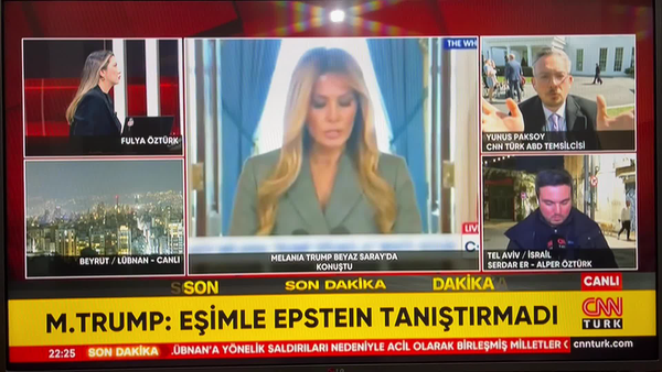 در گزارشی CNN TURK، با بازپخش صحبت های ملانیا ترامپ درباره افشای فایل های جزیره اپستین گفت: ملانیا تاکید دارد من در کثافتکاریهای دونالد ترامپ در جزیره اپستین هیچ نقشی ندارم.۳ MBنمایش گزارش