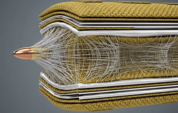 هنگامی که گلوله به لایههای بافته شده کولار برخورد میکند، این الیاف کشیده شده و انرژی جنبشی پرتابه را جذب میکنند. این فرآیند، شبیه به گرفتن گلوله در یک تور مولکولی بسیار مستحکم است.