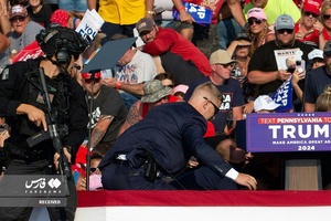 ساعاتی قبل دونالد ترامپ نامزد انتخابات ریاست جمهوری آمریکا از سوی یک تکتیرانداز در جریان سخنرانی انتخاباتی ترور شد. چهره دونالد ترامپ، رئیسجمهور سابق ایالات متحده که ساعاتی قبل در یک تجمع در شهر باتلر ایالت پنسیلوانیا سخنرانی میکرد، پس از تیراندازی خونآلود شد. این اولین تیراندازی به یک رئیسجمهور آمریکا یا نامزد اصلی از زمان تلاش برای ترور رئیسجمهور جمهوریخواه رونالد ریگان در سال ۱۹۸۱ بود.عکس: دریافتی