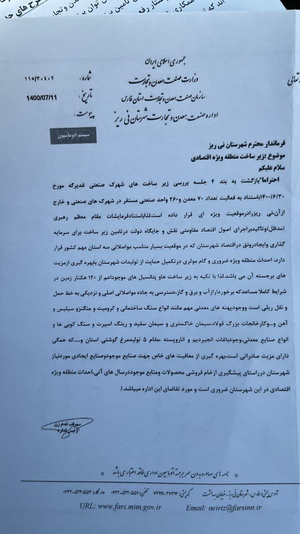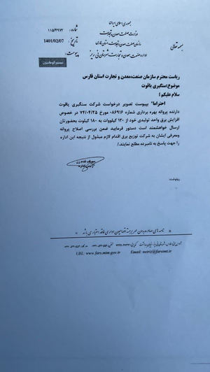 مصطفی صفی در خصوص مطالب یاد شده اظهار کرد: با عنایت به تامین برق مورد نیاز واحدهای صنعتی شهرک سنگ شهید سلیمانی نی ریز در سالیان اخیر و از آنجایی که کل شهر نی ریز از یک ایستگاه توزیع تغذیه میشود و حدود یک سوم بار ایستگاه که مصرف قابل توجه و بالایی هم دارد به این شهرک اختصاص یافته است رئیس اداره برق نی ریز اینگونه ادامه داد با توجه به اینکه خطوط تغذیه کننده موجود شهرک، ظرفیت محدود داشته که به دلیل رشد بار و افزایش مشترکین صنعتی کاملا پربار شده اند لذا طبق ماده 54 قانون احکام دائمی کشور احداث شبکه جدید به عهده شرکت شهرکهای صنعتی استان بوده که در سنوات قبل اقدامی انجام نشده است. صفی افزود: ضمنا در قانون بودجه سال جاری در بند م تبصره 15 قرار شده که وزارت نیرو در حد اعتبارات این بند از قانون بودجه تعدادی از شهرکهای صنعتی در کشور را که لیست آن با تفاهم وزارتخانه های صمت و نیرو تعیین خواهد شد برقدار نماید که تاکنون این لیست تهیه نشده و در صورتیکه شهرک سنگ نی ریز جزء لیست تفاهم شده آتی قرار گیرد و به استان ابلاغ گردد این مدیریت آمادگی لازم را خواهد داشت که در اسرع وقت مشکل شهرک مزبور را برطرف نماید، در غیر این صورت همانطور که در ابتدا اعلام گردید احداث شبکه فوق طبق ماده 54 احکام دائمی کشور به عهده شرکت شهرکهای صنعتی استان خواهد بود.