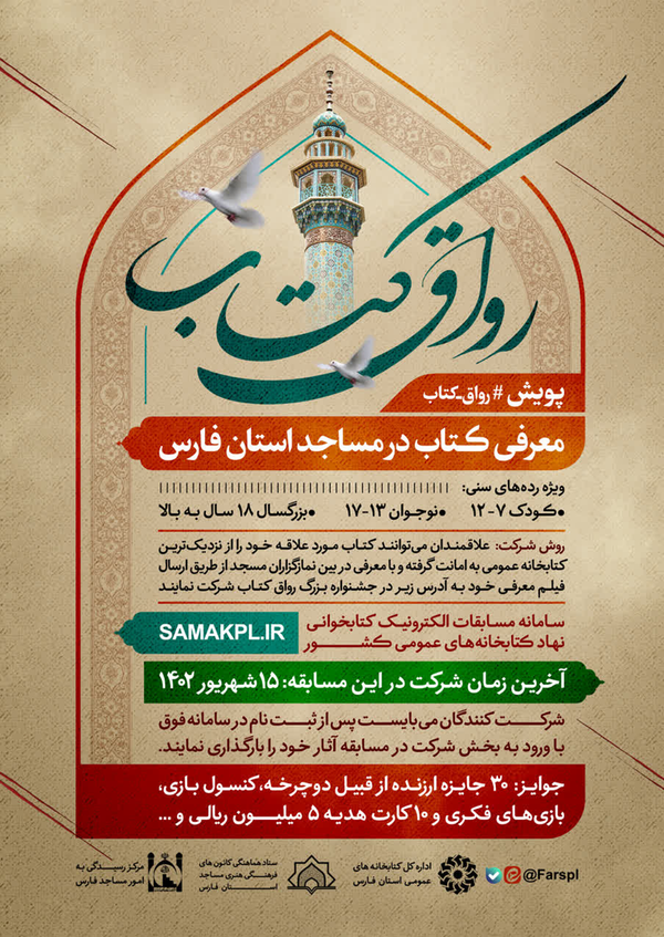 پویش «رواق کتاب، طرح معرفی کتاب در مساجد استان فارس» همزمان با ایام محرم و صفر برگزار می شود.