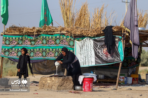 میپرسم: «امّ سجاد، چی توی این نونهات ریختی که اینقد خوشمزهان؟» خجالتزده سرش را پایین میاندازد: «آرد و آب و یه خورده نمک!» میایستم و پیشانی بلندش را میبوسم: «و عشق، امّ سجاد» اشک توی چشمهایش گلوله میشود: «من و خونه و زندگی و همه پسرا و دخترام به فدای ابو السجاد (ع)؛ درسته من فقط کیسه آردم رو آوردم اینجا و نون میپزم اما اگه بگن یا باید از امام حسین (ع) دست بکشی یا پسرت سجاد رو سر ببریم من میگم سر سجاد رو ببُرید!» پسر نوجوانی با دشداشه مشکی و یک دسته زوار از طرف جاده میآید پشت لبش هنوز کامل سبز نشده. امّ سجاد خمیر را از انگشتهایش میگیرد و پا برهنه میدود: «هله ابزوار الحسین. هله و میة هله» دست روی چشمهایش میکشد و به سمت کپرش راهنماییشان میکند. سجاد سر مادرش را میبوسد: «گواچ الله یوما» خداقوت گفتنِ ته تغاری بدجور به دل امّ سجاد مزه میکند. دستهایش را رو به آسمان میگیرد و برای پسرش دعای عاقبت به خیری میکند که همیشه زیر سایه پرچم امام حسین (ع)، خادم باشد. میایستم کنارش و شانهاش را میبوسم: «شما مجنوناید امّ سجاد! مجنونهای کپرنشین» دستم را محکم میگیرد و چند نان تنوری دیگر را برای بدرقه راه، در کیفم میگذارد: «حب الحسین أجننا دخترم؛ حب الحسین اجننا یوما ... .» پایان پیام/ .