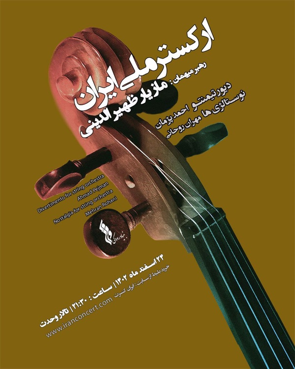 ارکستر ملی ایران به رهبری مازیار ظهیرالدینی ۲۴ اسفند در تالار وحدت روی صحنه میرود.