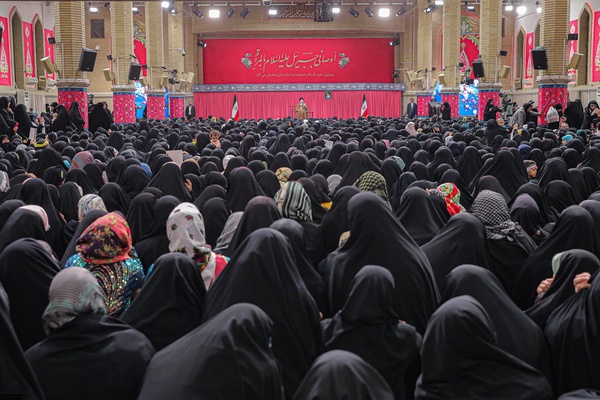 سرانجام، سخنرانی حضرت آقا آغاز میگردد. کلام ایشان، دلگرمی است و آرامش. وقتی که دیدار با بانوان را یکی از ماندگارترین دیدارهای حسینیه میدانند و رضایتشان را از طرح بحث سخنرانان و مسائلی که به آن پرداختهاند ابراز میکنند. سپس رهنمودهایشان که چراغ راه همه است در سه حوزه آغاز میگردد.حوزه اول، پیرامون مقام و جایگاه رفیع فاطمه زهرا سلامالله علیها. رهبر معظم انقلاب، برای هر زنی که از دوگانهی خانه_اجتماع عبور کرده، الگویی معرفی میکنند. الگویی ایستاده در قله به نام دختر پیامبر. حالا همهی ما زنها موظفیم برای رسیدن به آن قله تلاش کنیم، رسیدن به قلهای که زهرای اطهر بر بلندای آن ایستاده ممکن نیست اما حرکت به سمت آن قله و نزدیک شدن به آن، بر زنان فرض است.