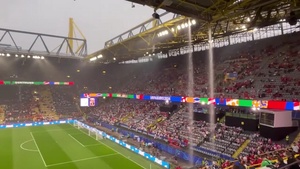 ریزش شدید باران از روی سقف ورزشگاه بازی ترکیه و گرجستان سوژه رسانهها شد.