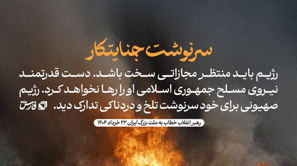رژیم باید منتظر مجازاتی سخت باشد. دست قدرتمند نیروی مسلح جمهوری اسلامی او را رها نخواهد کرد. رژیم صهیونی برای خود سرنوشت تلخ و دردناکی تدارک دید.رهبر انقلاب خطاب به ملت بزرگ ایران 23 خرداد 1404#وعده_صادق_۳ #پدافند #رهبری #پیام_رهبری #مرگ_بر_اسرائیل #وعده_صادق