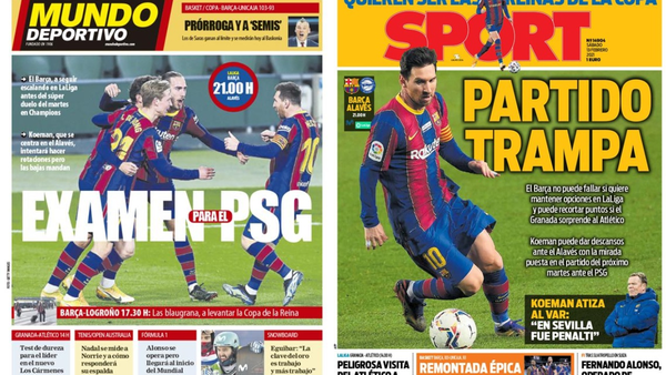 این تیم باید سه شنبه شب مقابل پاری سن ژرمن اولین دیدار حذفی خود در لیگ قهرمانان اروپا را برگزار کندموندو نوشت که کومان می‌خواهد از سیستم چرخشی استفاده کند و در مسابقه امشب به برخی بازیکنان در ترکیب اصلی بازی ندهد. اسپورت چاپ بارسلونا با تیتر «تقلب در مهمانی» به بازی امروز اتلتیکو و گرانادا اشاره کرد. این رسانه بارسایی اظهار داشت که اگر آبی‌اناری‌ها می‌خواهند شانسی برای قهرمانی در لالیگا داشته باشند باید امروز گرانادا همه را متعجب کند و مقابل اتلتیکو نمایشی درخشان داشته باشد. انتهای پیام/.