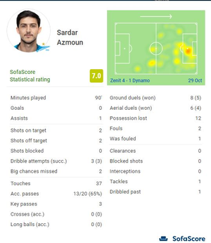 به گزارش خبرگزاری فارس، تیم فوتبال زنیت شب گذشته در هفته سیزدهم لیگ برتر روسیه موفق شد با نتیجه 4 بر یک دینامو مسکو را در هم کوبد و صدرنشین مطلق این پیکارها بماند. این تیم هم اکنون با 29 امتیاز در صدر قرار دارد و دینامو با 23 امتیاز در رده دوم ایستاده است. سردار آزمون ستاره تیم ملی کشورمان در این بازی سنت شکنی کرد. ستاره ایرانی همیشه گلزن اول زنیتی ها بود ولی در این بازی پایش به گلزنی باز نشد اما در مقابل یک گل ساخت. با نگاه به آمار ستاره خط حمله تیم ملی کشورمان متوجه می شوید او با کسب نمره 7 جزو بازیکنان خوب میدان بوده است. سردار 90 دقیقه برای زنیت در این بازی تلاش کرد. این بازیکن دو بار در کل بازی می خواست دروازه دینامو مسکو را باز کند ولی هیچ کدام از شوت های وارد دروازه رقیب نشد. مهاجم تیم ملی کشورمان در دریبل بازیکنان رقیب موفق ظاهرا شد و هر 3 باری که تلاش کرد از سد بازیکن رقیب عبور کند موفق به این کار شد. سردار در این بازی 37 بار تاچ به توپ داشته و 3 پاس کلیدی به هم بازی هایش داده که یکی از آنها به گل تبدیل شد. البته مهاجم ایرانی با توجه به حضورش در نوک خط حمله دقت پاس بالایی نداشته و تنها 65 درصد پاس هایش به مقصد رسیده است. در حالت کلی آزمون در این بازی سنت شکنی کرد و بعد از مدت ها نتوانست در یک بازی برای زنیت گلزنی کند. سردار در بازی گل تیمش دبل کرده بود و بهترین بازیکن میدان انتخاب شده بود.