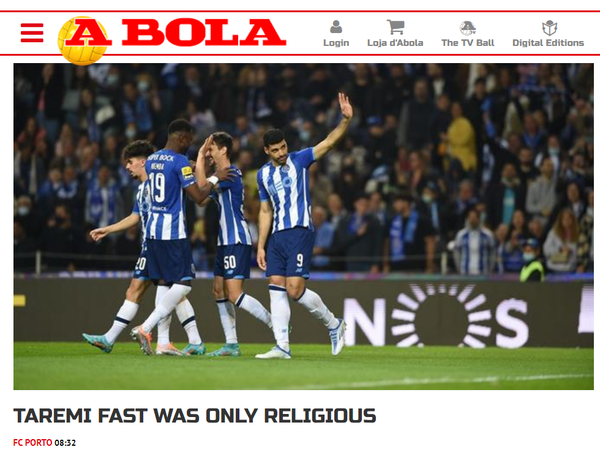 به گزارش خبرگزاری فارس، روزه گرفتن مهدی طارمی در ماه رمضان و افطار کردن او در میانه مسابقه پورتو و اسپورتینگ به سوژه اصلی رسانههای پرتغالی بدل شد. همه از او صحبت کردند و از روزه گرفتن ستاره مسلمان ایرانی حرف زدند. این واکنشها البته تداوم داشت و امروز نشریه آبولا مطلبی دیگر در خصوص روزهداری «مهدی طارمی» نوشت. معتبرترین روزنامه ورزشی پرتغال گزارشی در خصوص طارمی روی سایت خود برد و نوشت: روزه گرفتن در ماه رمضان باعث نشد تا عطش طارمی برای گلزنی کم شود. ستاره ایرانی 4 بار در 2 بازی اخیر لیگ پرتغال گلزنی کرد. یک گل مقابل گویمارش به ثمر رساند و مقابل پورتیموننزه هتتریک کرد. او در نظر دارد در بازی امشب مقابل براگا نیز سریال گلزنیهای خود را ادامه بخشد. تیمی که همیشه مقابلش موفق بوده است. طارمی با پیراهن ریوآوه 2 بار مقابل براگا گلزنی کرده و با تیم پورتو نیز توانسته در 5 دوئل خود به 2 گل دست یابد. نشریه آبولا نوشت:پورتو جدای از بازی امشب مقابل براگا، یک بازی دیگر در روز شنبه مقابل ویزلا دارد که در ماه رمضان برگزار میشود. در باشگاه پورتو مهدی طارمی و زایدو مسلمان هستند و روزه میگیرند ولی این روزهداری اثری روی کیفیت آنها نمیگذارد. کونسیسائو پیشتر در خصوص روزهداری طارمی و زایدو گفت: پورتو یک مرکز پزشکی مجهز با حضور ویتور هوگو، یکی از بهترین متخصصان تغذیه جهان دارد. آنها 100 درصد که هیچ، 1000 درصد در ماه رمضان آماده هستند.
