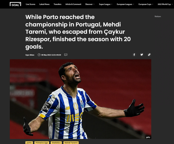 سایت گل ترکیه در گزارشی به شرح زندگی طارمی و ماجرای انتقالش به باشگاه ریزه اسپور پرداخت و از او به عنوان تاثیرگذارترین بازیکن پورتو یاد کرد.