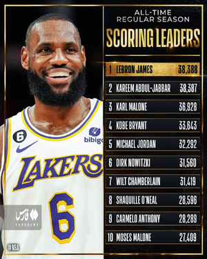 فوقستاره تیم لیکرز امتیازآورترین بازیکن تاریخ لیگ بسکتبال آمریکا شد.