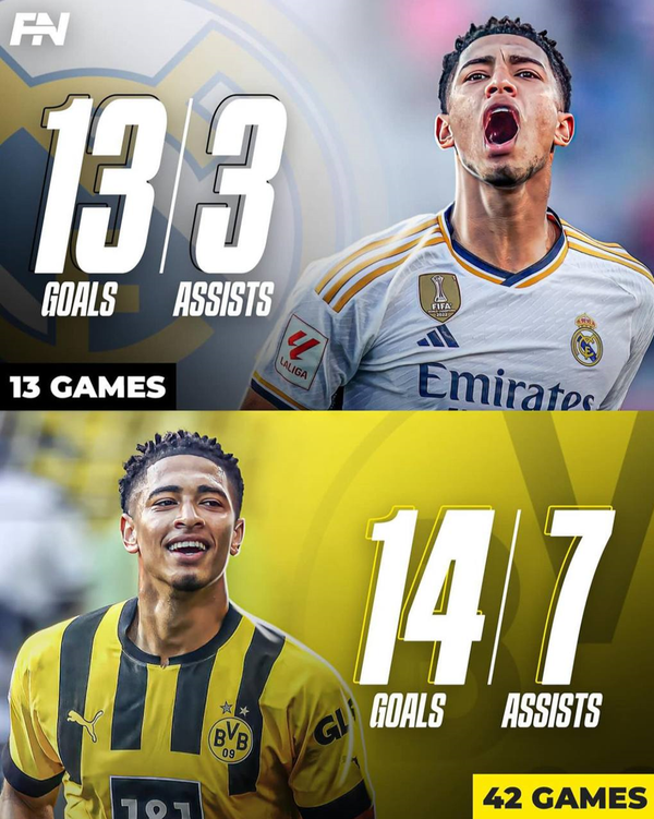 به گزارش خبرگزاری فارس، جود بلینگام ستاره تیم ملی انگلیس تابستان گذشته از دورتموند راهی رئال مادرید شد. ستاره انگلیسی خیلی زود خودش را با قوهای سپید وفق داد و آماری خارق العاده در اولین فصل حضورش در لالیگا ثبت کرد. در همین رابطه رسانه‌های خارجی به مقایسه عملکرد بلینگام در 13 بازی برای رئال با کل فصل حضورش در دورتموند پرداختند که آمارش تفاوت زمین تا آسمان دارد. ستاره تیم ملی انگلیس با پیراهن رئال مادرید  در 13 بازی موفق شده 13 گل به ثمر برساند و 3 پاس گل بدهد. اما در دورتموند در یک فصل 14 گل را در 42 بازی به ثمر رسانده و 7 پاس گل داده است. با نگاه به آمار بلینگام در دورتموند و رئال متوجه می شوید ستاره انگلیسی پیشرفت 3 برابری در ترکیب تیم مادریدی داشته است. پایان پیام/