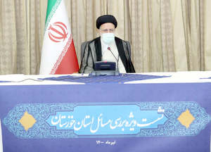 تشکیل «شورای راهبردی» برای خوزستان ابراهیم رئیسی در نشست ویژه بررسی مسائل استان خوزستان، معضلات استان در زمینه‌های گوناگون به‌ویژه کم‌آبی را مورد رسیدگی قرار داد رئیسی در این نشست، با ابراز ناراحتی و نگرانی عمیق خود از وضعیت مردم استان خوزستان، اظهار داشت: «برای اینکه زمان تا تشکیل و استقرار دولت جدید از دست نرود این جلسه را تشکیل دادیم تا راهکارهای عملیاتی را برای برطرف‌کردن مشکلات استان بیابیم و هر آنچه امکان‌پذیر است از اکنون اجرایی شود.» رئیس‌ جمهوری منتخب با بیان اینکه مدیرعالی استان در استان‌هایی که شرایط خاص دارند در دولت مورد توجه خواهد بود، گفت: «در استان‌هایی که مشکل خاص دارند، استانداران ویژه انتخاب خواهند شد تا با اختیارات ویژه بتوانند به صورت نوبه‌ای مسائل استان را در زمان‌های کوتاه با حضور در هیأت دولت مطرح و پیگیری کنند و رفع محرومیت در استان‌هایی مانند خوزستان و سیستان‌وبلوچستان در اولویت اقدامات همه دولتمردان خواهد بود.» رئیسی با تأکید بر اینکه باید اهتمام ویژه‌ای در کشور نسبت به برطرف‌کردن مسائل استان خوزستان داشت، افزود: «متأسفانه نسبت به خوزستان بی‌توجهی‌هایی صورت گرفته و چنانچه در طول این مدت توجه خاصی به استان شده بود امروز شاهد انباشت مسائل و مشکلات مختلف در سطح استان نبودیم.