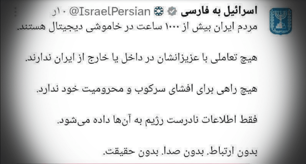 @Mahdavi19861 روز پیش«یه مقام اسرائیلی توی پخش زنده دنیا رو تهدید کرد:"هرکسی از اسرائیل انتقاد کنه، دشمن ماست. از طریق گوگل حواسمون بهتون هست. نقاط ضعفتون رو رو میکنیم. کاری میکنیم از کارتون اخراج بشید.اگه هم کسبوکاری دارید، ورشکستتون میکنیم."✍️این حرف ها رو یک فعال معمولی نزده؛