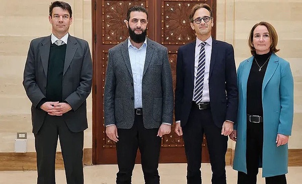 براساس اعلام بیانیه وزارت خارجه آلمان، یک مقام ارشد دولت این کشور هم با سران حاکم بر دمشق گفتوگو کرد. وزارت خارجه آلمان در این باره اعلام کرد: «مذاکرات درباره روند انتقال سیاسی و انتظارات ما در مورد حمایت از اقلیتها و حقوق زنان به منظور حمایت از توسعه صلحآمیز در سوریه متمرکز بود.» بر اساس بیانیه وزارت خارجه آلمان، این هیأت همچنین از ساختمان سفارت آلمان در دمشق بازدید کرده است.انگلیس هم از جمله کشورهایی بود که هیأت به دمشق اعزام کرد. الجولانی در دیدار هیأت انگلیسی بر نقش مهم انگلیس در عرصه بینالمللی، ضرورت احیای روابط و پایان دادن به همه تحریمهای اعمال شده علیه سوریه به منظور بازگشت آوارگان سوری از دیگر کشورها به کشورشان تأکید کرد.کاخ الیزه فرانسه هم اقدام به اعزام هیأت به سوریه کرد و یک هیأت دیپلماتیک فرانسوی بدین منظور به دمشق رفت و الجولانی ملاقات کرد.