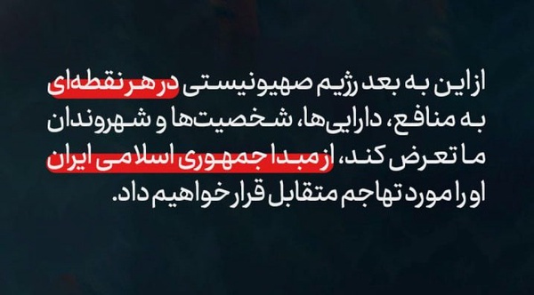 با سلام و دروداگر چنانچه اسرائیل مرتکب خطایی علیه ما شد با شدت باید جواب او داده شود. حمله موشکی چند برابر قوی تر ...