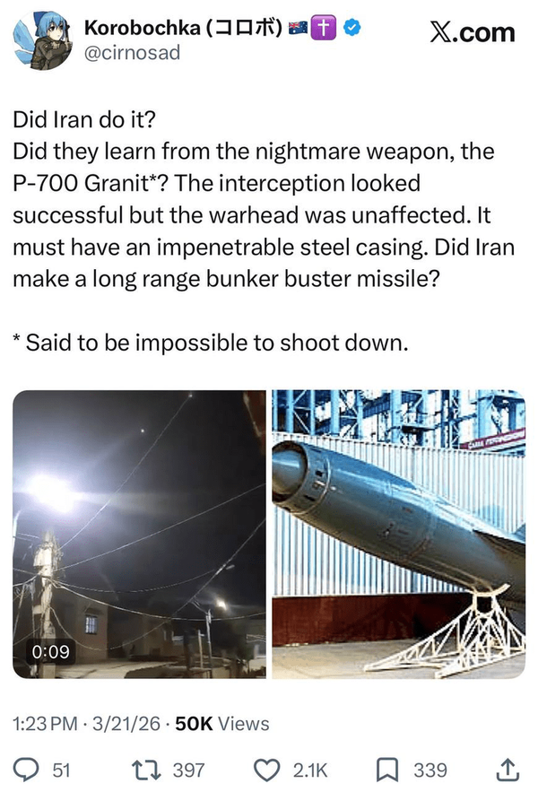 @fajazinevis2 فروردین 1405در پاسخ بهاون واکنشی که به Drop Site داده شده خطرناکه، چون نشون میده کم کم فرماندهی امریکایی صهیونیستی داره سعی میکنه حساسیت جنگ رو بالاتر ببره و از طریق اون آتش جنگ رو برافروختهتر کنهبه نظرم حمله به تاسیسات برق یک False Flag برای عملیات بدتری میتونه باشه، ایران باید آمادهی یک پاسخ بزرگ به عملیات دشمن ب…نمایش بیشتر
