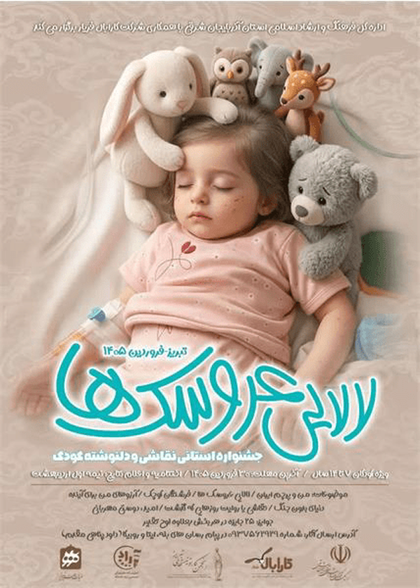 ادارهکل فرهنگ و ارشاد اسلامی آذربایجان شرقی با همکاری انجمن کارتونیستهای تبریز فراخوان نخستین جشنواره استانی نقاشی و دلنوشته کودک با عنوان «لالایی عروسکها» را ویژه کودکان ۷ تا ۱۴ سال استان منتشر کرد.