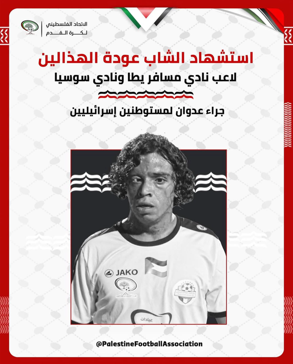 عوده محمد الهذالین، فوتبالیست فلسطینی که برای باشگاههای مسافر یطا و سوسیا بازی میکرد روز گذشته در حملهای به روستای امالخیر در کرانه باختری توسط یک شهرک به قتل رسید.در زیر میتوانید لحظه دلخراش تیر خوردن این بازیکن را تماشا کنید.