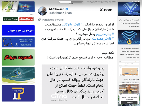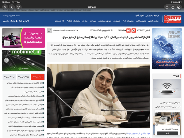 @emperor_0205 ساعت پیشسیتناآغاز بازگشت تدریجی اینترنت بینالملل؛ تأکید سیتنا بر اطلاعرسانی دقیق از منابع موثقروند آغاز شد و همچنان در حال تداوم است.#اینترنت