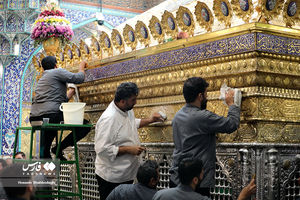 تنظیف مضجع شریف حرم حضرت معصومه(س)
