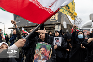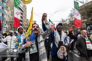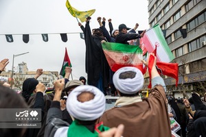 مردم مقتدر و شهید پرور تهران در روز ۲۲ اسفند ماه ۱۴۰۴، در آخرین جمعه ماه مبارک رمضان (روز قدس) زیر بارش رحمت الهی و همزامان با حملات تروریستی آمریکایی_صهیونیستی، بار دیگر با حضوری گسترده در خیابان های تهران حاضر شدند و شعار های انقلابی سر دادند. بر اثر حمله متجاوزانه آمریکایی_صهیونیستی نیز یکی از بانوان در این راهپیمایی به شهادت رسید.عکس: هادی هیربدوش#روز_قدس#شهادت