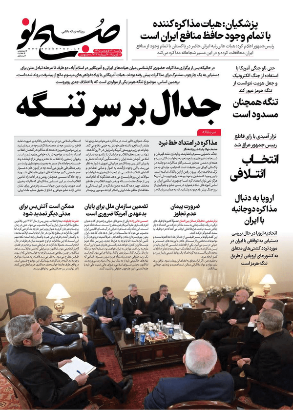 به گزارش خبرگزاری فارس، روزنامههای امروز یکشنبه، ۲۳ فروردین ۱۴۰۵ تیتر یک خود را به موضوعاتی از قبیل گفتگوهای غیرمستقیم ایران و آمریکا در اسلامآباد پاکستان، وضعیت معیشتی و اقتصادی مردم در شرایط جنگ، درآمد نفتی ایران در دوران جنگ اختصاص دادند.