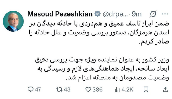 قبل از روشن شدن دلیل کارشناسی حادثه مسئولین پزشکیان دست به ماله شدند و آنرا حادثه ای طبیعی ذکر کردند!
