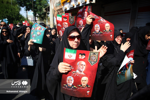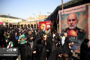 The bodies of Lieutenant General Gholam-Ali Rashid and his son Hojjatoleslam Amin-Abbas Rashid, who were martyred in the recent Israeli aggression, were laid to rest at the holy shrine of Hazrat Sabzeqaba (AS) in Dezful, Khuzestan province, in a funeral attended by crowds of mourners. [MORE PHOTOS]