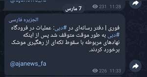کاربر دیگری میگوید: «هیچ اتفاقی نیفتاده، اما امارات ۱۰ دقیقه پیش اعلام کرده که همه پروازها تا اطلاع ثانوی لغو شدن!!! چه تصادف عجیبی. مقامات دبی فقط دروغگو هستن!! باورشون نکنید.»