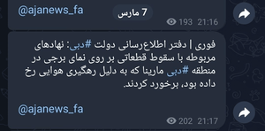 کاربری گفت: «پس چرا پروازها در فرودگاه دبی فرود نمیان و هواپیماها مدام نزدیک فرودگاه در حال چرخیدن هستن؟ دروغ گفتن رو متوقف کن.»