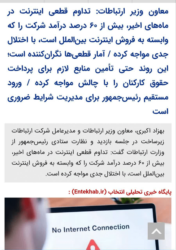 اذعان اخیر یکی از مقامات ارشد وزارت ارتباطات مبنی بر وابستگی بیش از ۶۰ درصدی درآمدهای بخش ارتباطات کشور به زیرساختها و پلتفرمهای تحت مدیریت قدرتهای سلطهگر، زنگ خطری جدی برای حاکمیت ملی و استقلال اقتصادی کشور است. این آمار تکاندهنده نشان میدهد که اختلال در این شبکهها نه تنها یک چالش فنی، بلکه …نمایش بیشترنمایش گزارش
