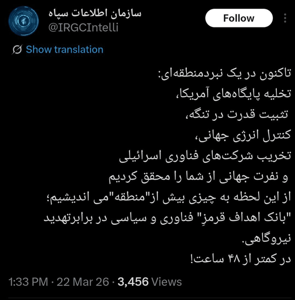 @Kazemi14042 فروردین 1405در پاسخ بهفناوری یعنی اینترنت شون هم قطع میشه:))فرا منطقه یعنی احتمالا خاک آمریکا...