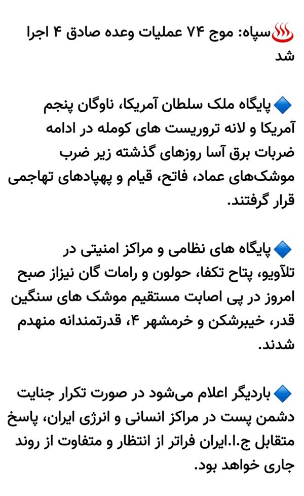 @EzioAuditore2 فروردین 1405در پاسخ بهولی حالا که تا اینجا اومدیم بقیش رو هم بریم. من یکی حمایت تام خودم رو از نیروهای مسلح اعلام میکنم