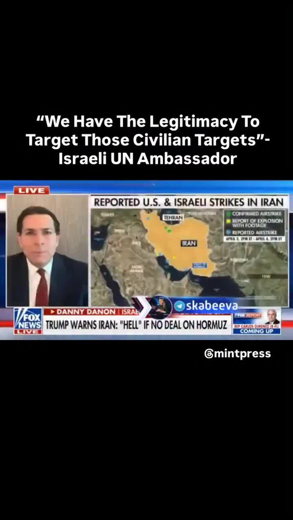 اسرائیل رسماً اعلام کرد که قصد دارد جنایات جنگی بیشتری علیه غیرنظامیان ایرانی مرتکب شود.دنی دانون سفیر اسرائیل در سازمان ملل: ما مشروعیت هدف قرار دادن اهداف «غیرنظامی» را داریم.دعاهای رضا پهلوی کیپا به سر هنگام کوبیدن کلهاش به دیوار ندبه برآورده شد.#ایران#آمریکا#اسرائیل#پهلوی#جنگ