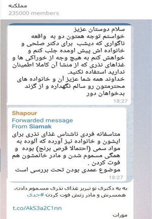 بهگزارش خبرنگار اجتماعی خبرگزاری فارس؛ در ایام سوگواری حضرت اباعبدالله بود که خبری مبنی بر مرگ همسر و مادر بزرگ یک پزشک در تبریز آنهم به دلیل مصرف «غذای نذری مسموم» در رسانهها منتشر و به سرعت دهان به دهان چرخید. شایعات زیادی نیز در این بین ساخته و در فضای مجازی منتشر شد و البته عدهای سود جو نیز سعی کردند تا از این فرصت برای بدبین کردن مردم به نذریها و مراسمهای این ایام استفاده کنند تا شاید بتوانند از این طریق حضور مردم در این برنامهها را کمرنگ کنند.مرگ دو نفر از اعضای خانواده پزشک تبریزیمتن خبر از درگذشت دو عضو خانواده پزشک مشهور تبریزی در روز 18 مهرماه حکایت داشت و اینکه فردی ناشناس با مراجعه به مطب این پزشک به اصطلاح خوش نام تبریزی، غذایی که ظاهرا به سیانیک یا قرص برنج آلوده بوده را تحویل وی میدهد و مصرف آن باعث مرگ همسر و مادربزرگ این پزشک و مسمومیت شدید پدر و مادرش میشود.پس از آن سازمان پزشکی قانونی استان آذربایجان شرقی مرگ این دو نفر را تایید و اعلام کرد که از جسد مادربزرگ این پزشک نمونهبرداری کرده است.همزمان جمال حسینی٬ مدیر روابط عمومی دانشگاه علوم پزشکی تبریز نیز در مصاحبه با رسانهها گفت: مسمومیت غذایی این خانواده مشخص و قطعی شده است و خانواده پزشک جوان تبریزی به دلایل مشکوک و با غذای آلوده نذری مورد سوءقصد قرار گرفتهاند.صلحی کیست؟علیرضا صلحی پزشکی است که به دلیل تجویز صدای شجریان برای درمان بیماران و همچنین خوشخط بودن شهرت دارد.